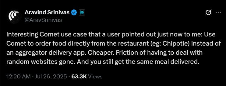Let’s get back to where we began, with Srinivas claiming that Perplexity’s Comet can even order food.