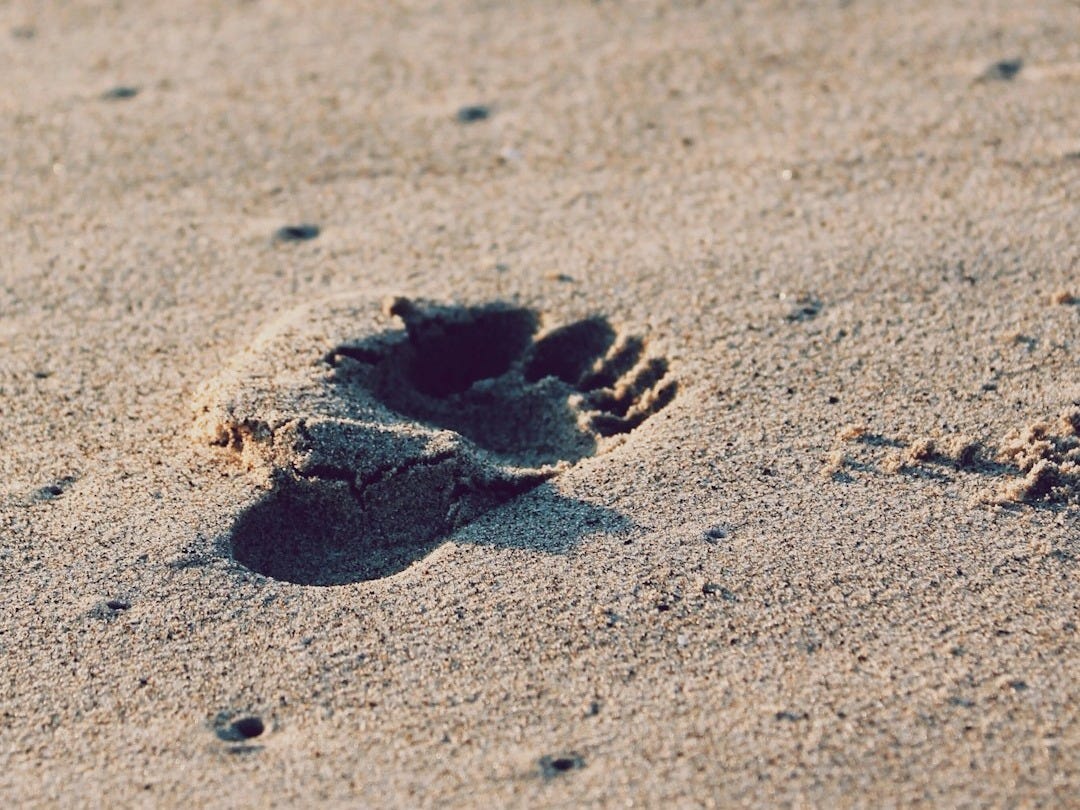 I miss that first step that itch to put your foot down on dirt that isn't your hole. I miss that first step that foundation of a foot corn of one well-travelled sole. I miss that first step that morning blow to old tendons unrested restless soul. I miss that first step that yawn to break over the clouds just to reach that old Sol. I miss that first step that cracking dawn of starmelt over crunch of breakfast bowl. I miss that first step that shawl of jet black night a stolen nighttime stroll. I miss that first step that diminished print of my weight long lost to age-old toll. I miss that first step that haunting print now a fade breadcrumbs of my own whole.